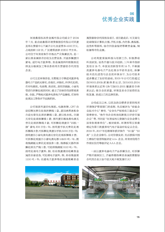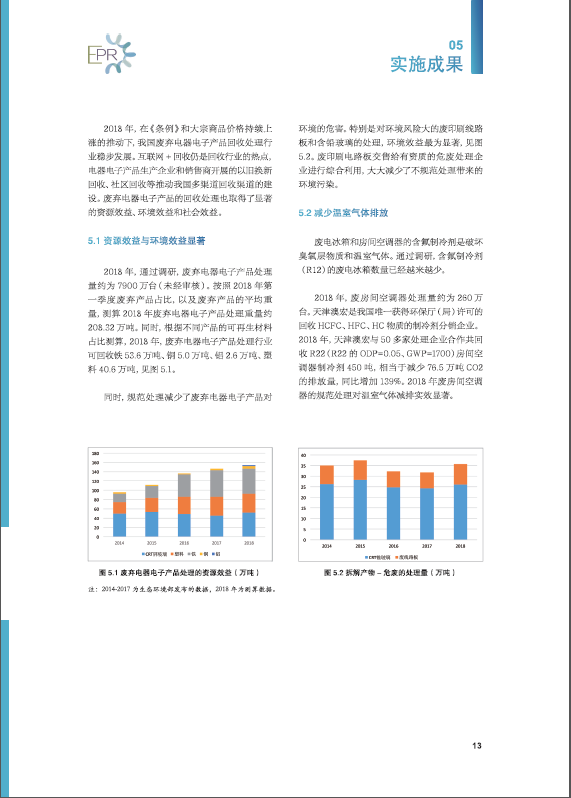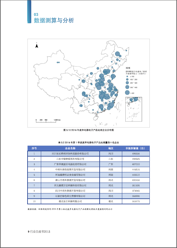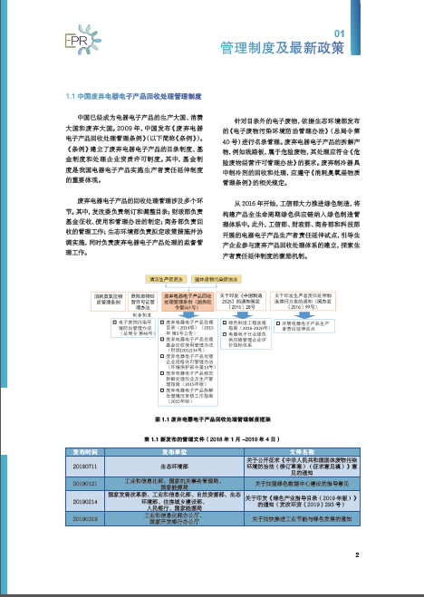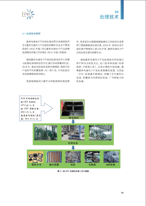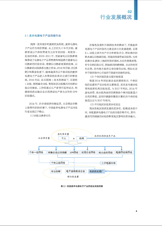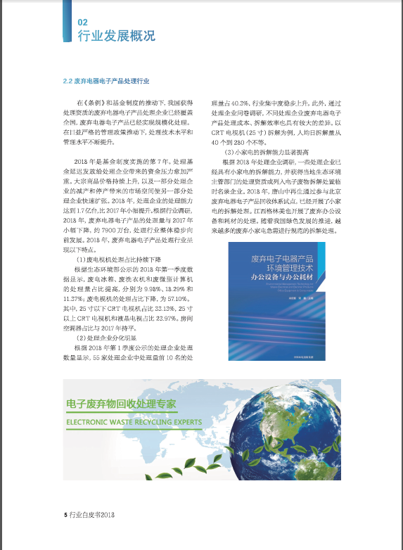 201958,《中国废弃电器电子产品回收处理及综合利用行业白皮书2018》在第十二届电器电子产品生产者责任延伸制度及回收处理技术国际会议(2019)上正式发布,白皮书从整体经济形势、政策趋势、行业发展热点等方面进行了探讨与研究。今年白皮书的内容进行了全新改版,主要包括中国废弃电器电子产品回收处理管理制度及最新政策、行业发展概况、数据测算与分析、处理技术、实施成果、优秀企业实践、风云人物7大部分。